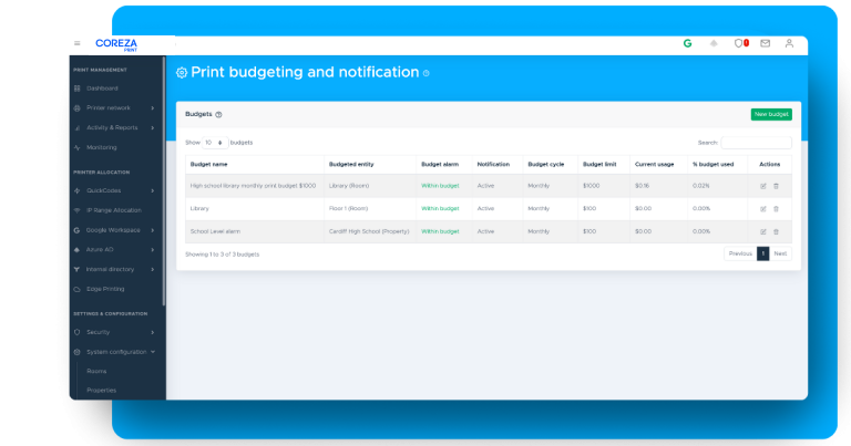 Do certain departments (such as HR) need to print more regularly than others? Decide which employees have printing priority and use Coreza Print to implement maximum page allowances.